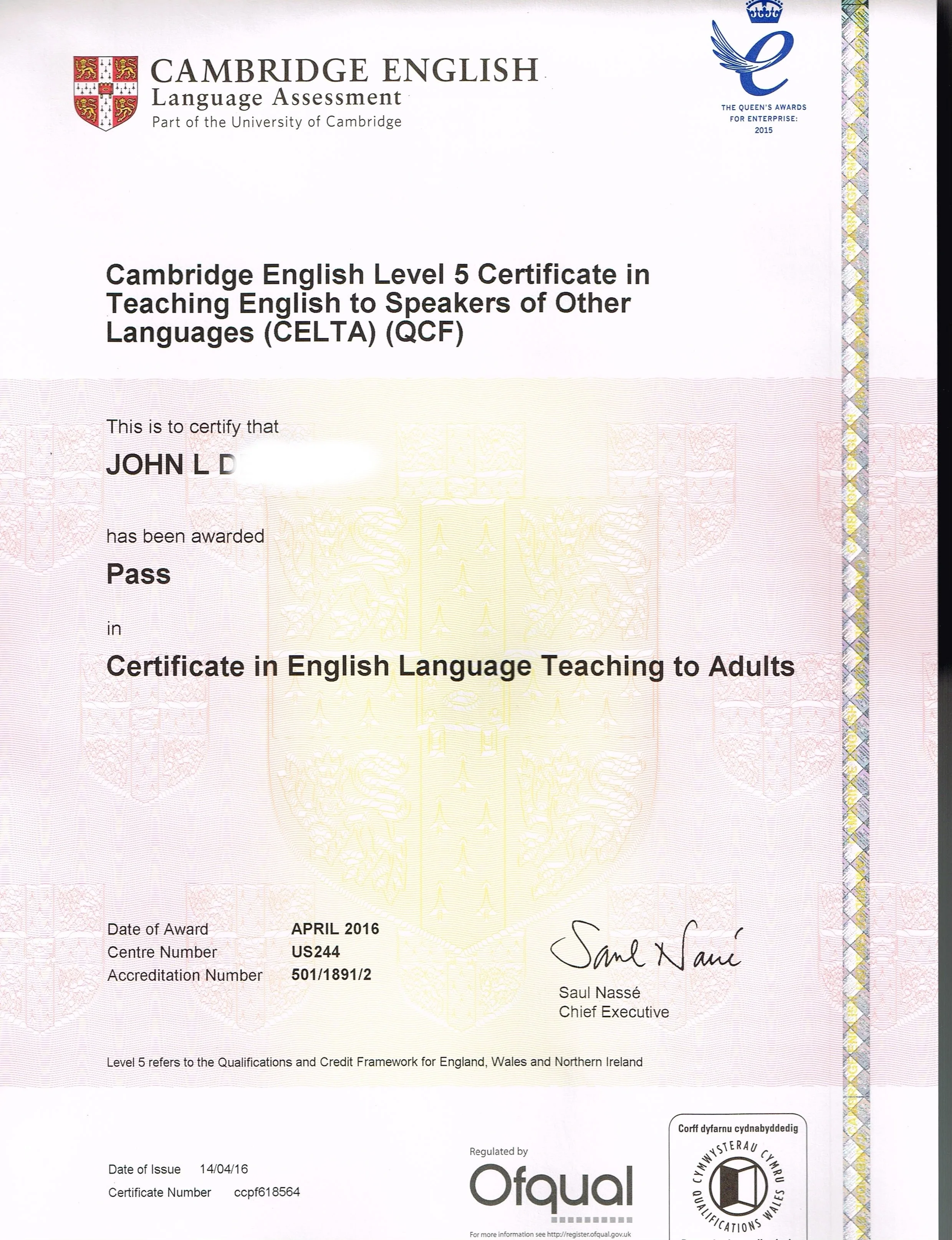I obtained my CELTA certification from Teaching House, New York (Cambridge University). I'm also a trained and certified teacher in my state, New Jersey, in the USA. I obtained my Bachelor’s Degree in History and Education in 2015 from New Jersey City University.
